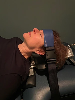 The gentle distractive forces of the Spinal Decompression create a decompression of the spine with unloading due to distraction and proper positioning, to improve blood flow and nutrient exchange to the injured area. You'll experience several cycles of stretch and relaxation, which graduate to a peak over a period of several minutes.
